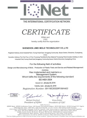 深圳市集美模具科技有限公司成立于2004年,注册资本3000万元,拥有自建集美工业园 2万多平方米。是深圳机械行业协会的副会长企业,同时也是深圳市机器人协会的会员单位。目前年产各类模具300余套。所有产品采用国际质量标准,并在生产各个环节贯彻完善的质量检查措施,已获得ISO9001和ISO14001管理体系认证及IATF16949证书